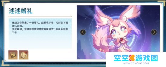 1月15日版本更新后,不仅有签到7天获取的10张「星轨专票」以外,还可额外获得迷迷为开拓者一次性带来的「星轨专票」*10和「变量骰子」。为开拓者前往新星球增添助力。