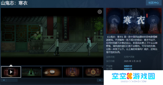 恐怖剧情解谜游戏《山鬼志:寒衣》Steam页面 明年发售