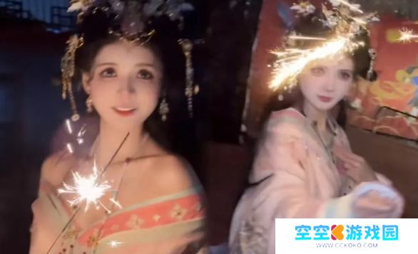 狗头萝莉饼摊即将结束,现场给大家放烟花庆贺,手拿仙女棒太美了